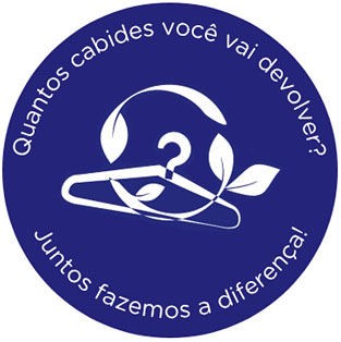 Substituímos cabides tradicionais por modelos produzidos a partir de matéria prima reciclada e temos como meta até 2030 usar apenas cabides feitos a partir da cana-de-açúcar, uma matéria-prima renovável, leve e durável. Desde 2013 mantemos um programa ativo de devolução de cabides, que voltam para o uso, que poderia virar descarte. O resultado é elegante e simples: menos resíduos, mais consciência, mais responsabilidade.